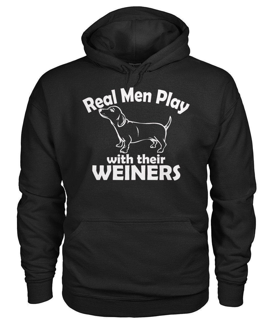 LES VRAIS HOMMES JOUENT AVEC LEURS PÉNIS, HUND GILDAN HOODIE