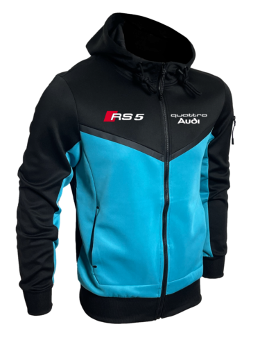 - Un logo emblématique : l’incontournable logo Audi RS5 fièrement affiché témoigne de votre passion pour l’ingénierie de haute performance et un design iconique. Le summum des vêtements de course.