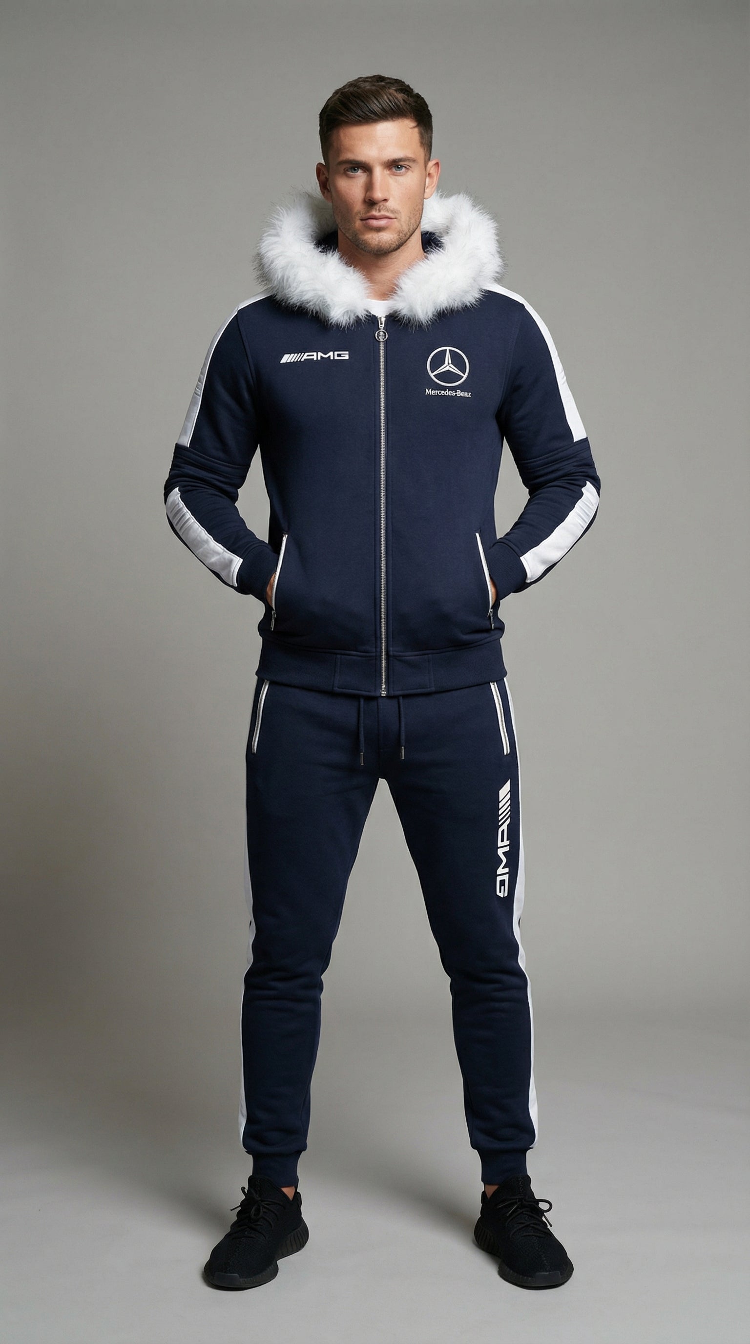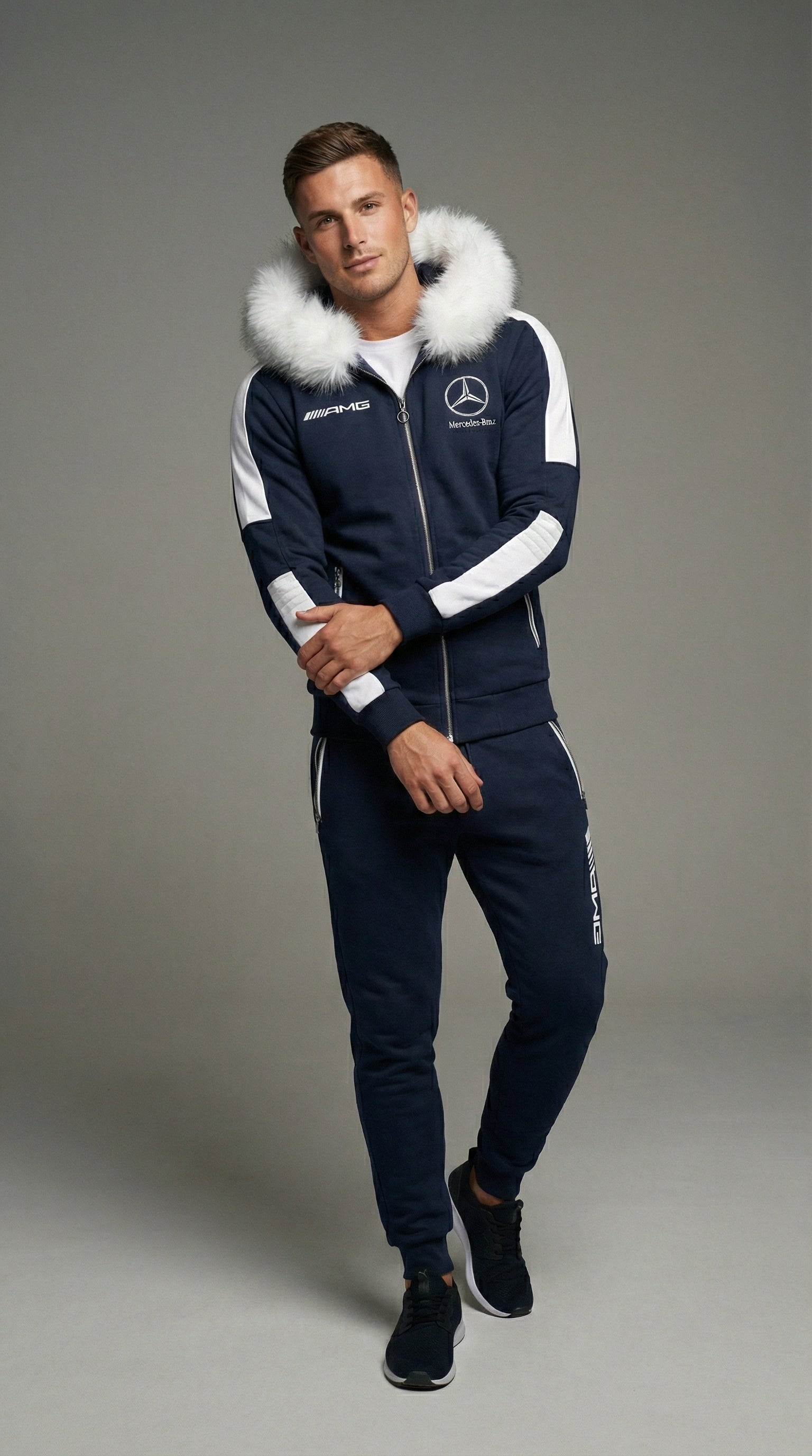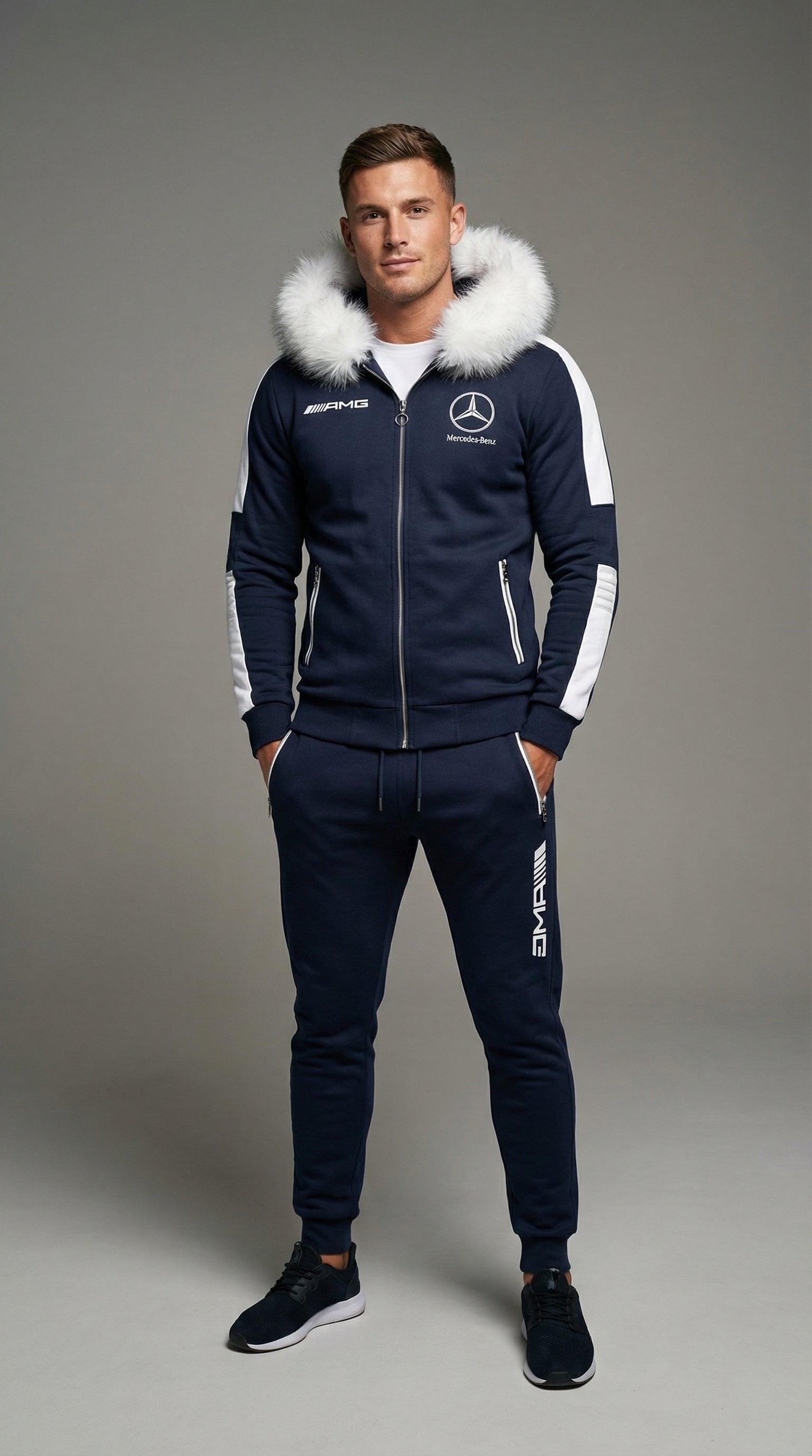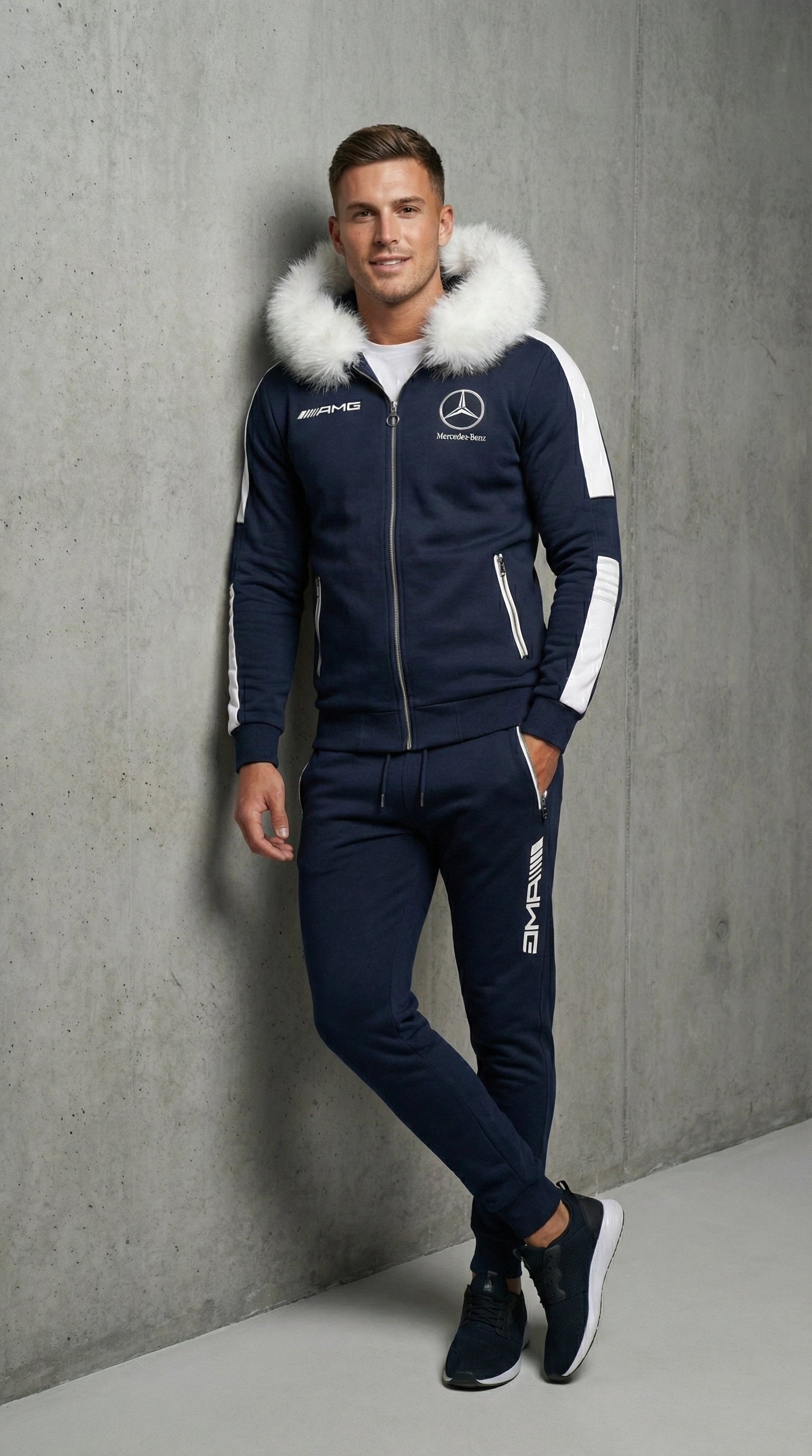 SURVÊTEMENT À CAPUCHE MERCEDES AMG BLEU ET BLANC