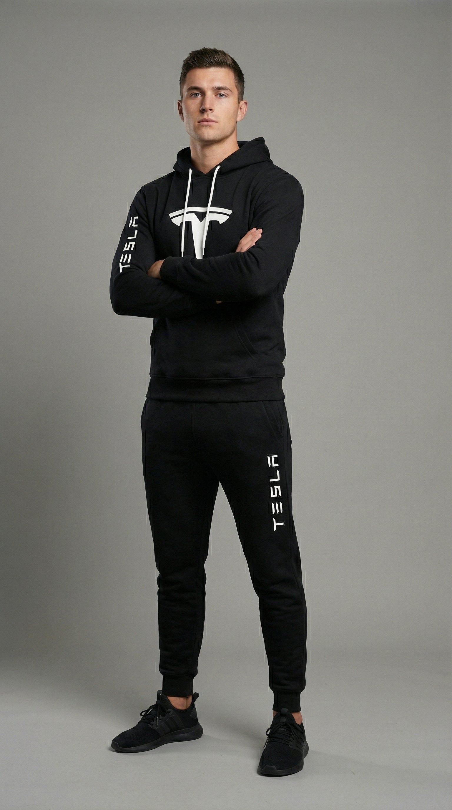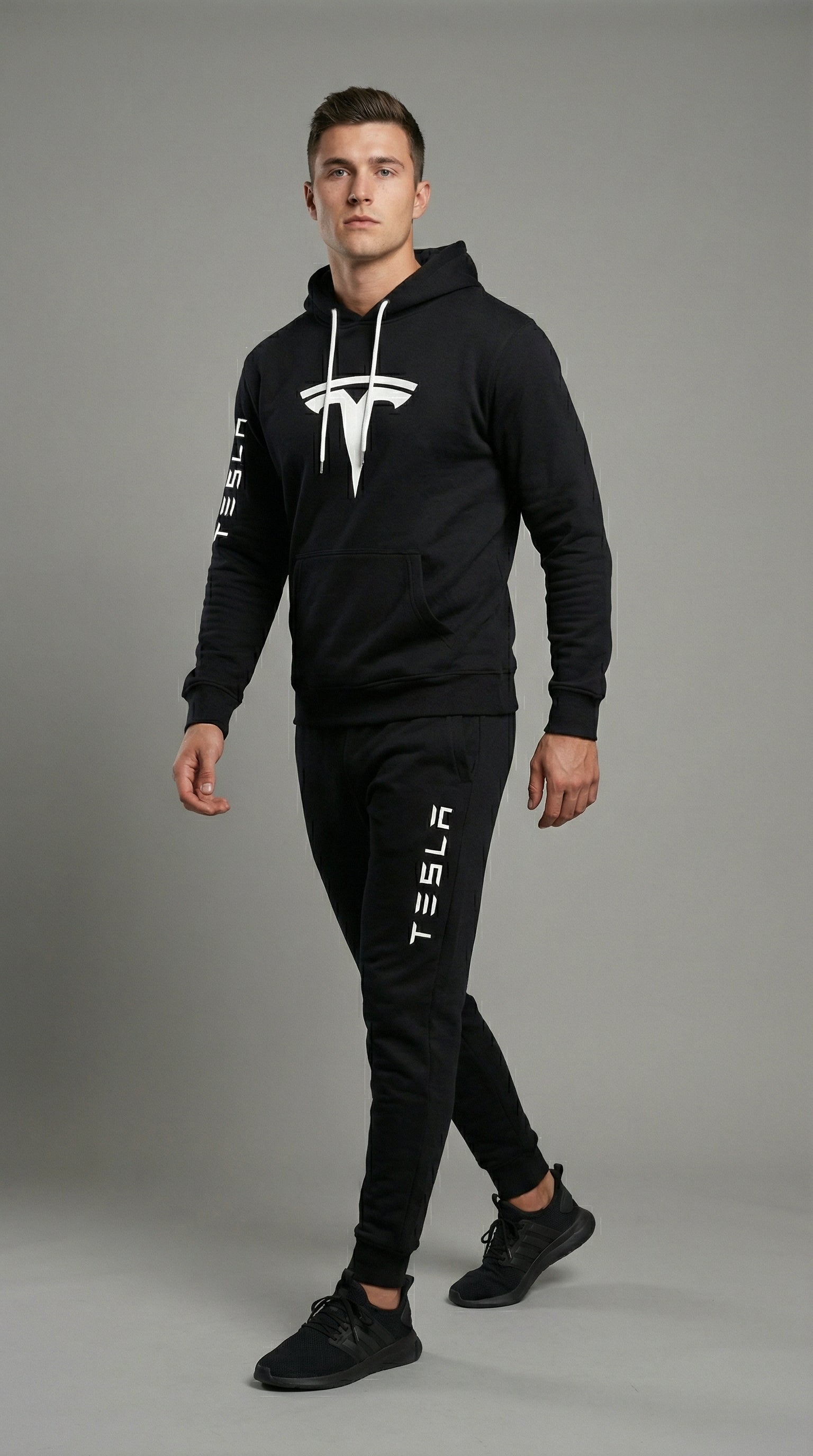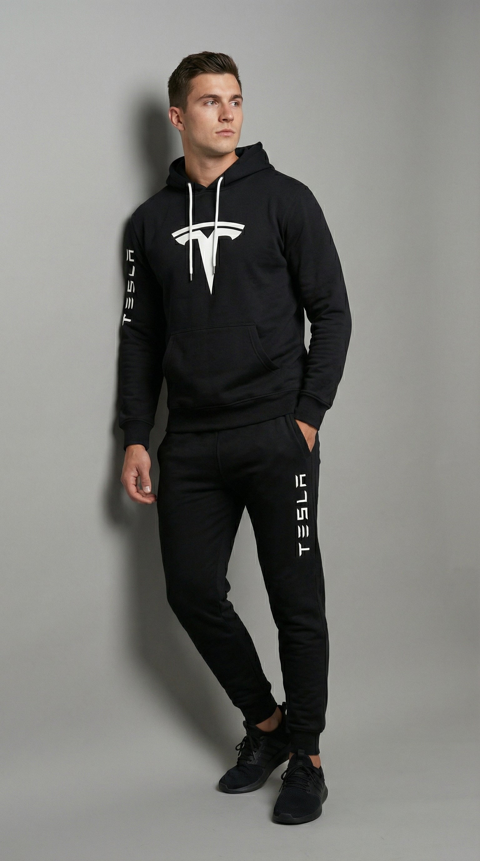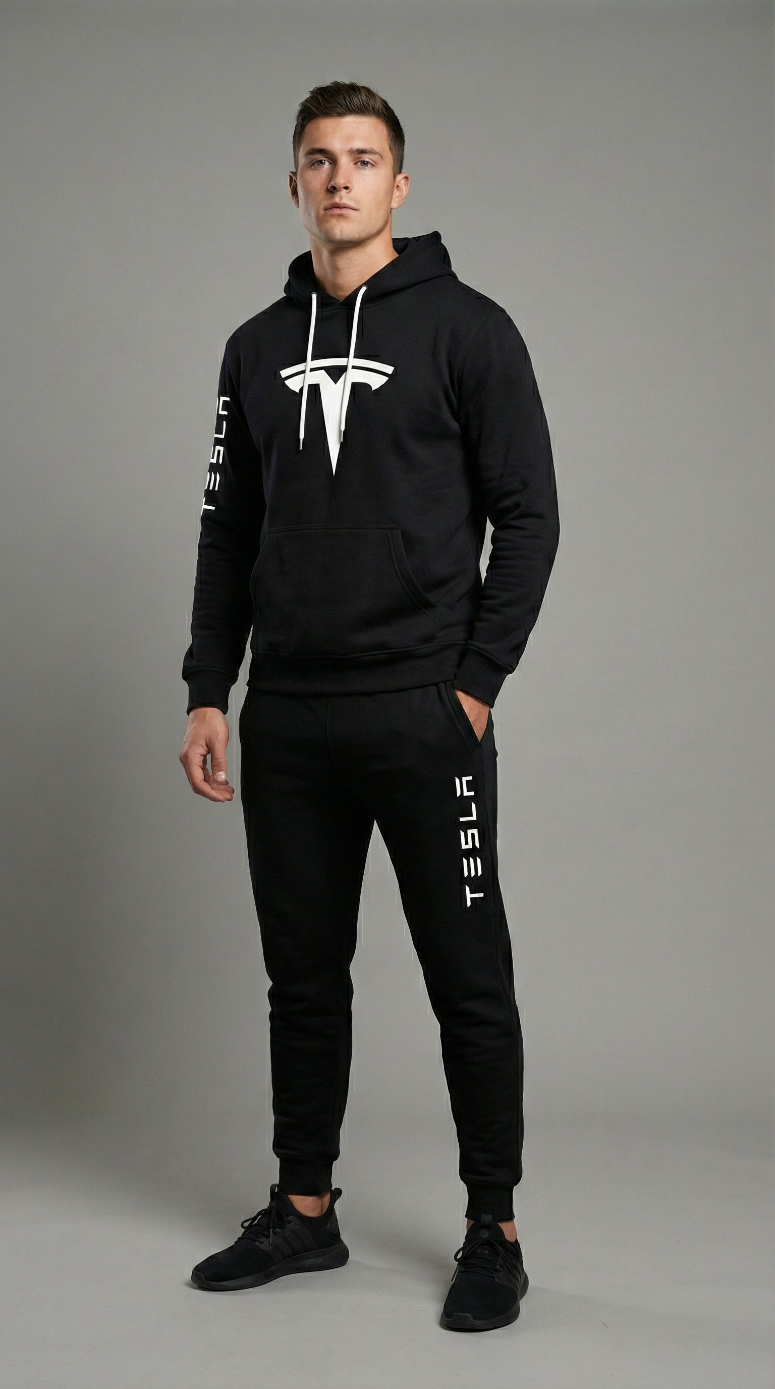 Image : [Texte alternatif : Un mannequin porte l'ensemble sweat à capuche et pantalon de survêtement pour homme de Drivi.store, mettant en valeur sa coupe confortable et son design élégant.]